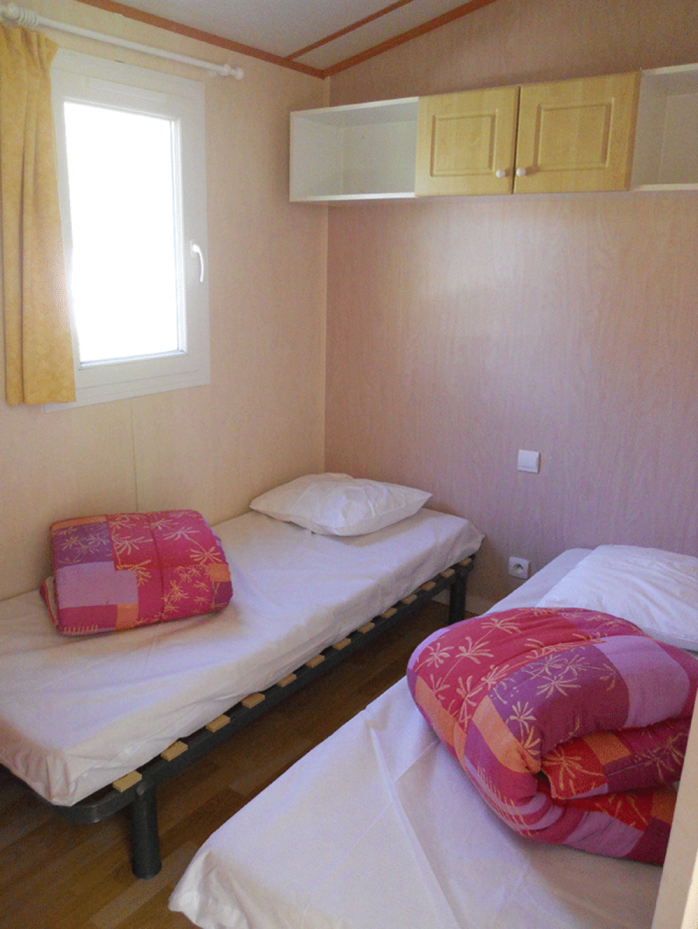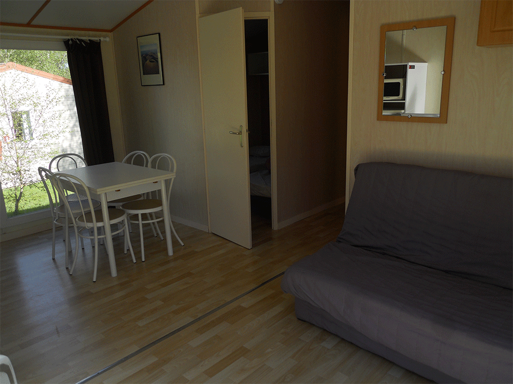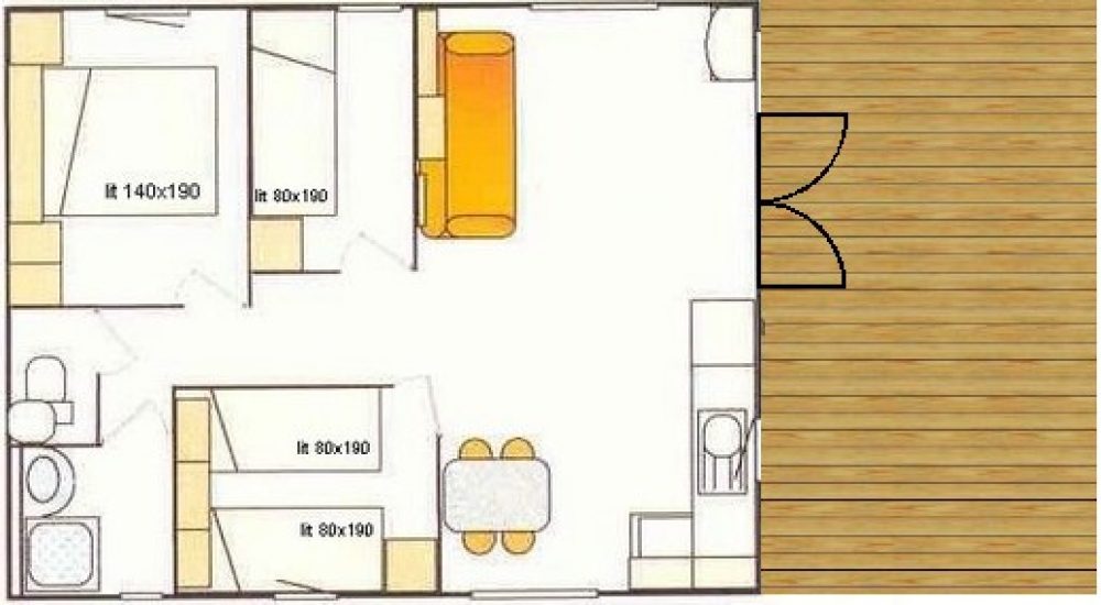 Ce chalet de 40m² pour 5 personnes est composé d’un coin cuisine entièrement aménagé, d’un salon panoramique, 1 chambre avec 1 lit 140 cm, 1 chambre avec 2 lits 80cm, 1 chambre avec 1 lit 80 cm, salle de bain, wc indépendant. Possibilité 2 couchages supplémentaires ( avec supplément tarifaire ).