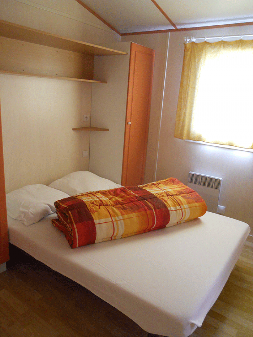 Le chalet est équipé en vaisselle, réfrigérateur, plaque de cuisson gaz, four micro-ondes, cafetière électrique,... Pour la literie, sont fournis, les couettes et oreillers (60 x 60 cm). Pour le chauffage des radiateurs électriques équipent les différentes pièces (le chauffage est facturé selon la consommation.) Terrasse, Salon de jardin, parasol sont présents dans chaque chalet. Les draps, housses de couetteS et le linge de toilette NE SONT PAS FOURNIS. Des draps jetables sont en vente à l'accueil..